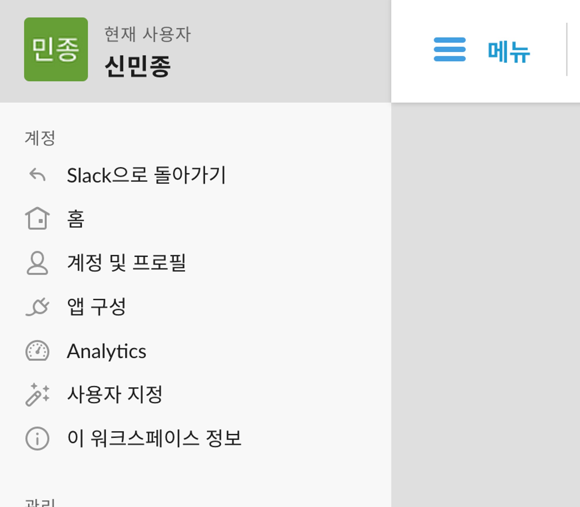 슬랙 워크스페이스 -> 설정 및 관리 -> 사용자 지정