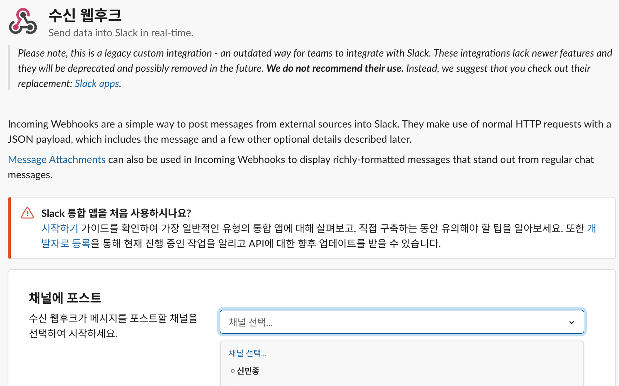 우선 위에 있는 슬랙홈에 들어갑니다.